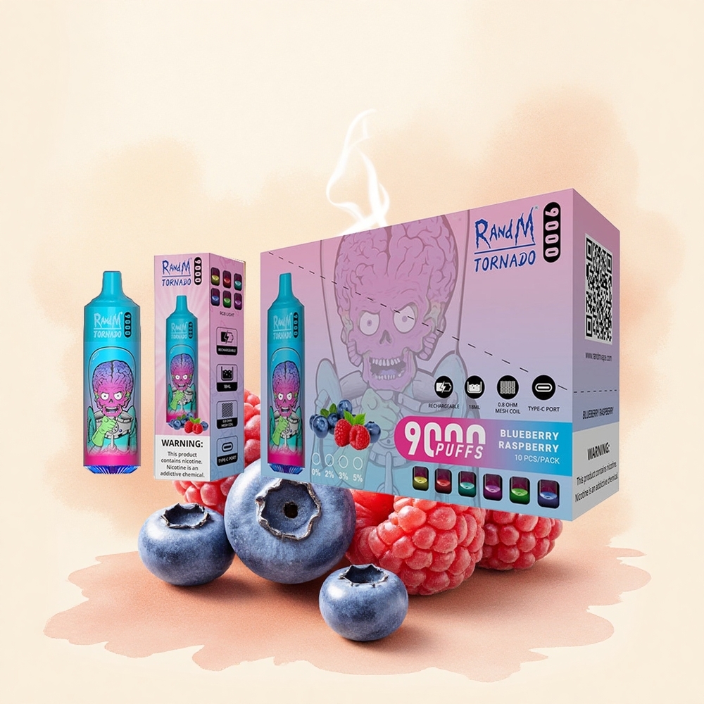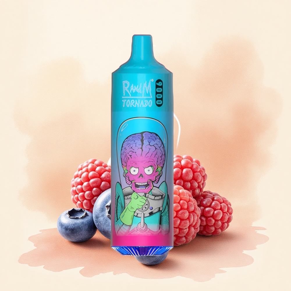 RandM Fumot Tornado 9000 Puffs Arándano Frambuesa 18 mL 850 mAh Pantalla RGB